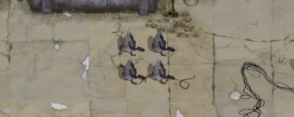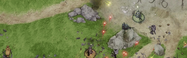 Tiny, tinny mosh pit moves to the sound of the brass-heavy adaptive soundtrack. But you will be able to hum with our robots at the campfire too. Throw yourself to the tune of tubas, trombones, trumpets, and horns!