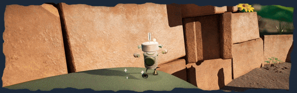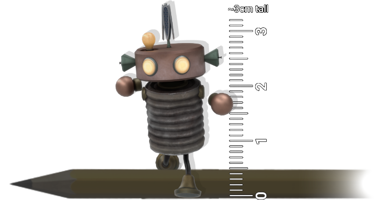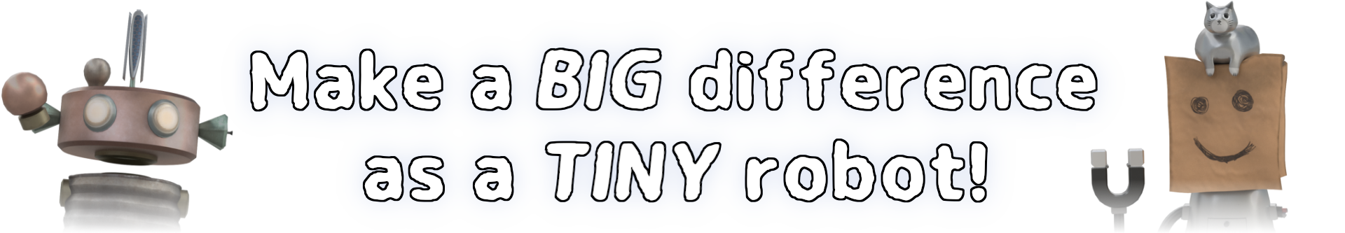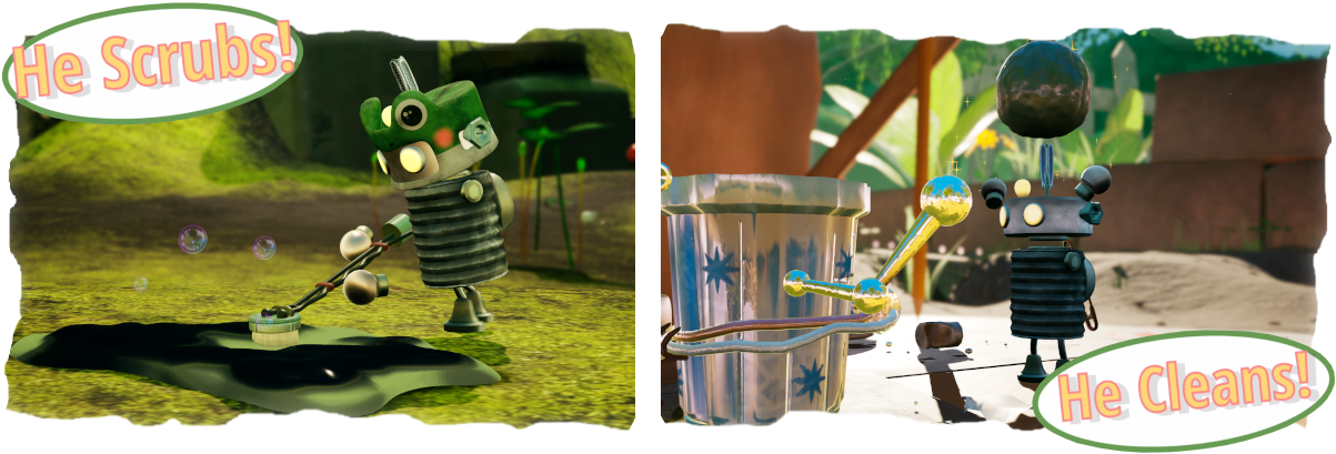 Interact with unique robots made from everyday items, helping them with their struggles.