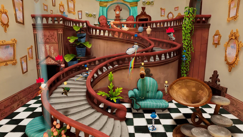 Play, race and hang with your feline friends in this online platformer party game! Purrfect your pussycat parkour as you sprint, jump, bounce, swing, skid and slide through a collection of collaborative and competitive mini-games set in a grandiose cartoon mansion. Get jumpin', jazz cats!