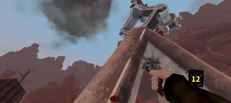 First person rolling, bullet catching, kicking, hookshot-hat, cannibalism, drinking booze and puking.