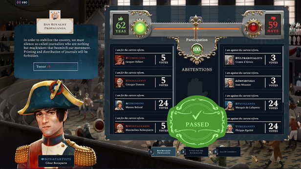 Join, fight or overthrow famous historical characters and factions brought to life in a political simulation. Military might alone cannot insure victory, and your ability to navigate the complex political landscape will be an essential tool to reshape France to match your ideals.