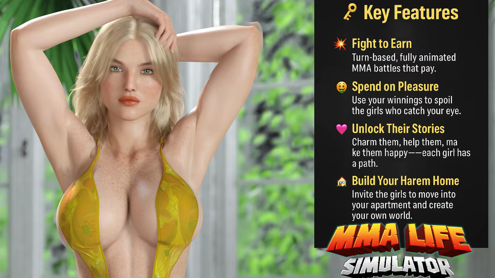 Take what the world owes you. Step into the brutal underground of mixed martial arts as a young fighter clawing his way out of poverty, crime, and betrayal. In MMA Life Simulator, fists are only one weapon power, money, and sexual control decide who truly wins. Every punch you throw, every woman you influence, and every moral line you cross shapes your rise.