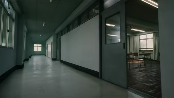 In one of the classrooms, a girl stands quietly. Even when you try to speak to her, she does not respond.