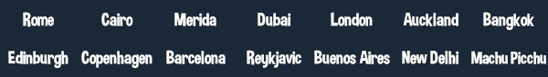 Travel to the sandy beaches of Dubai, linger around the ancient streets of Rome or enjoy the bustling life of Bangkok.