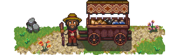 No one knows where he comes from... only that he has everything you need. Buy and sell with the wandering merchant before he vanishes.
