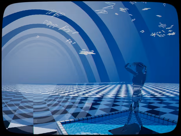 Explore colorful, surreal worlds inspired by the "Silicon Dreams" aesthetic of late 80's/early 90's CGI.
