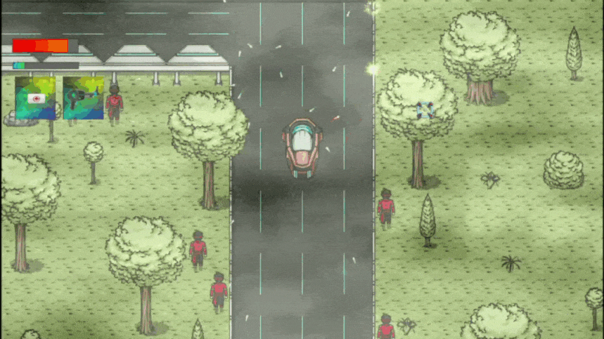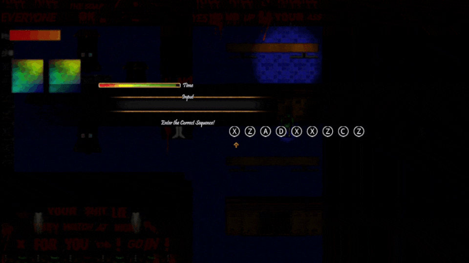 ~ The videogame contains non-realistic violence (Pixel art) such as blood, shooting and moderately vulgar language; occasional swear words.