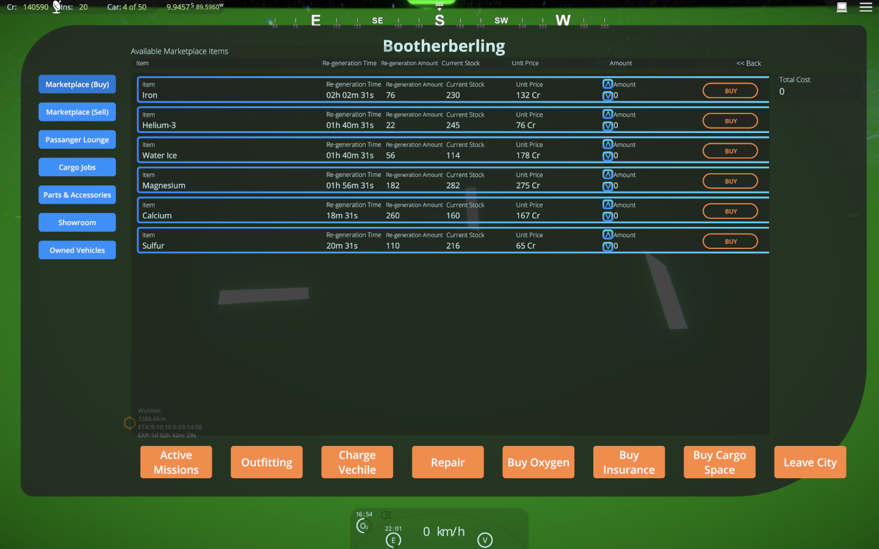 To survive on this brutal environment of space, you need to earn money, increase your cargo space and buy rovers to increase your efficiency. Your efficiency is defined by your capacities of oxygen tanks, energy storage, vehicle condition. There are several kind of missions you can make. Each kind of mission requires different assets to be installed in your cargo space. Get a vehicle of large enough, divide your cargo capacities accordingly, and make several missions at the same time to maximize your outcome.