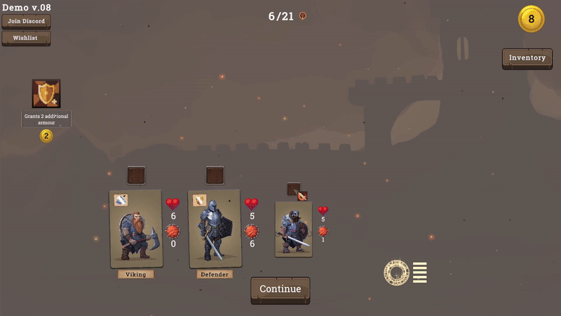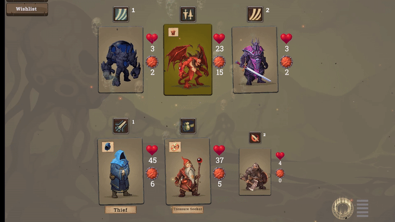 Viking: Deals damage to enemies based on his own health points. Additionally, attacks a random enemy at the start of each turn.