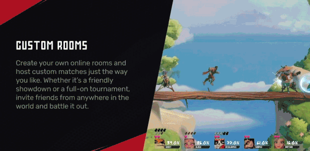 Experience the thrill of combat with a unique roster of characters, each with their own technical and thoughtful move sets designed for both casual players and competitive fighters alike. Master your character’s abilities and outplay your opponents in intense platform battles.