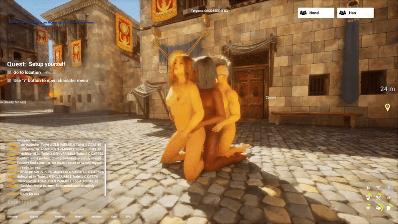 Use in-game chat to get all information and news about NPC and AI. For example you will get messages when AI are ready for sex, etc...