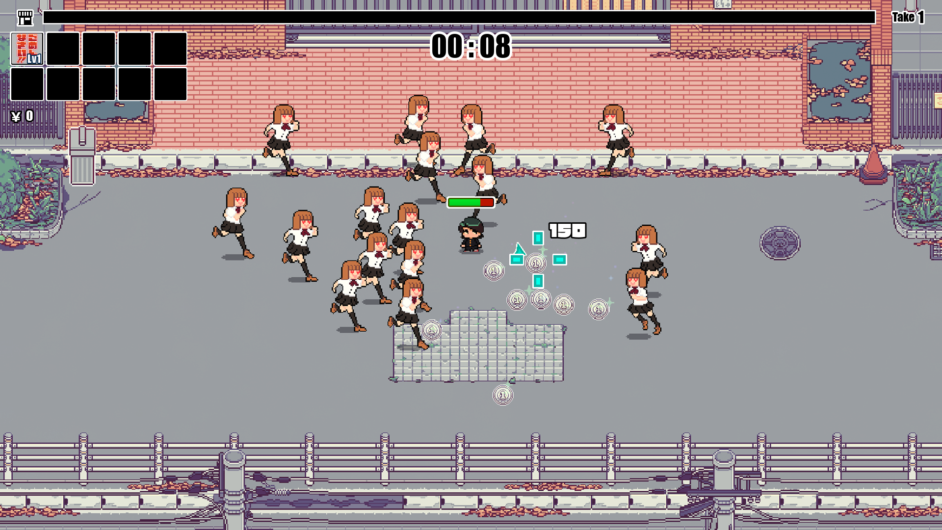 In "Sorry Survivor," the main character becomes irresistible and rejects girls who approach him, aiming for his dream heroine. It's a simple top-down, harem-denying, Vampire Survivors-like 2D action game.