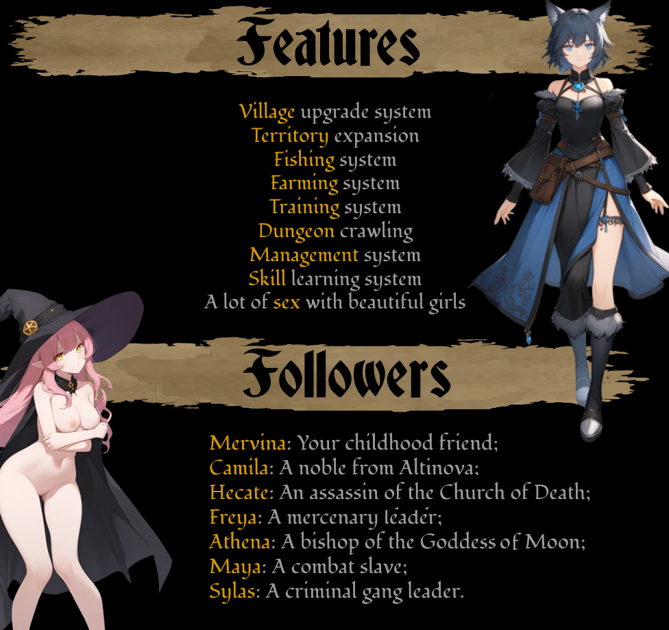 An adult RPG game blending village building, dungeon crawling, and captivating love interests. Dynamic choices, resource management, thrilling combat, and deep character interactions create an immersive experience where every decision shapes your village, relationships, and survival.