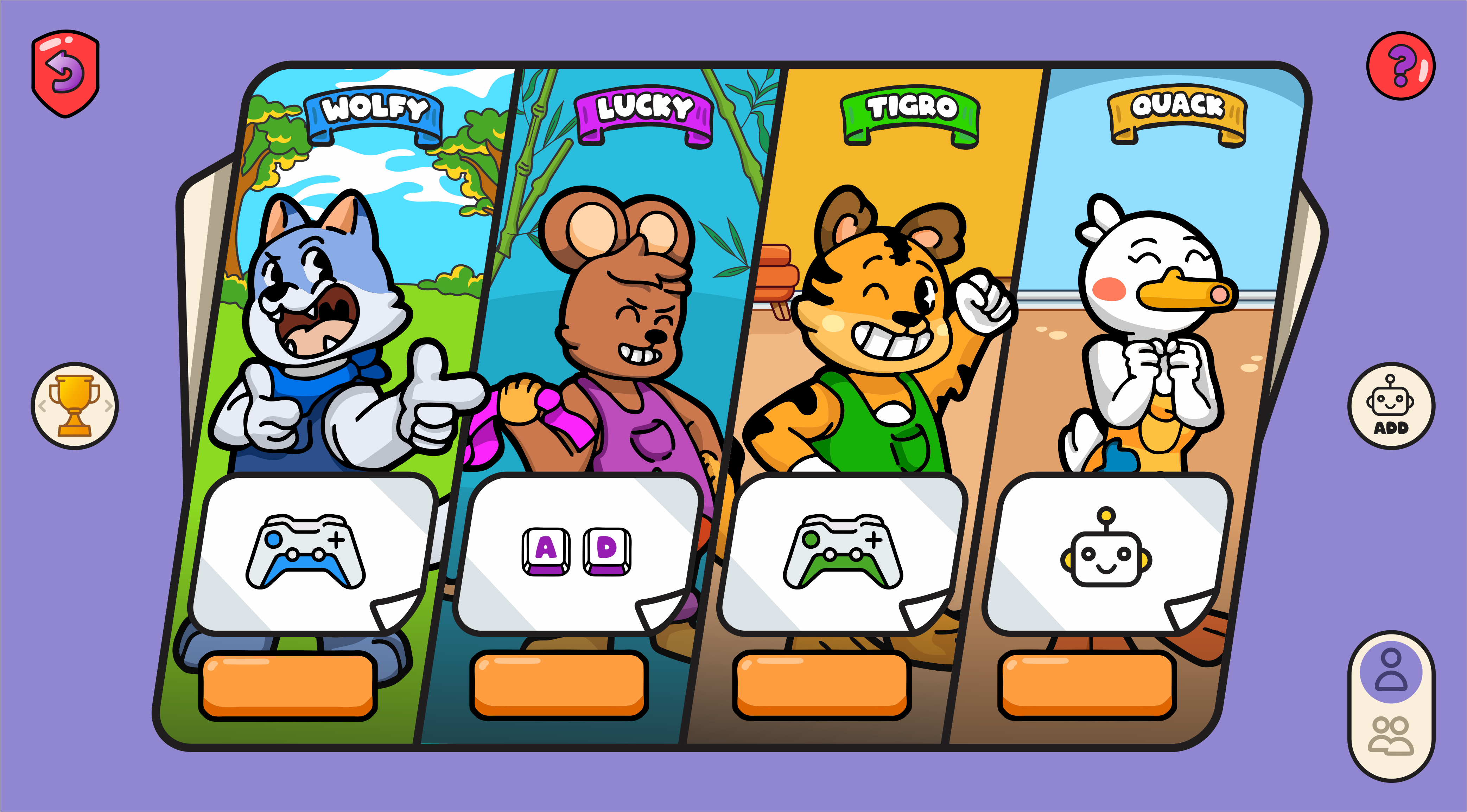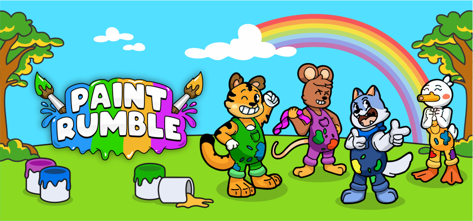 Paint Rumble is a fast-paced party game where strategy and reflexes matter! Cover the most area in 2-minute battles, playing solo, in teams, or against friends locally or online. Choose Wolfy, Quacky, Tigro, or Lucky, grab power-ups, and use your agility to dominate the battlefield!
