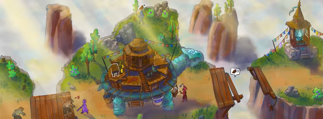 Shellborne is a chaotic co-op game, where you guide a giant mystical turtle, over a dangerous mountain path. Collect resources and flee from the evil fog.