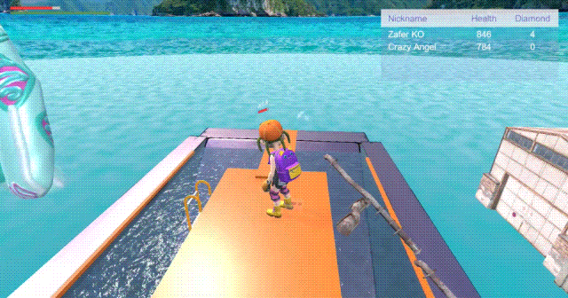 Players try to reach the gifts in the platform area by trying to overcome many platform obstacles. In the meantime, they try to escape from the gel balls sent to them by the opponents generated by the game and the avatars used by real people. These gel balls reduce the player's energy and health and when this level is reset, the player becomes ineffective.