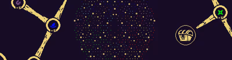 A vast magic sigil is etched on the battleground. Each one of its magic nodes provides a boon to its user: statistics increase, weapons, and powerful perks.