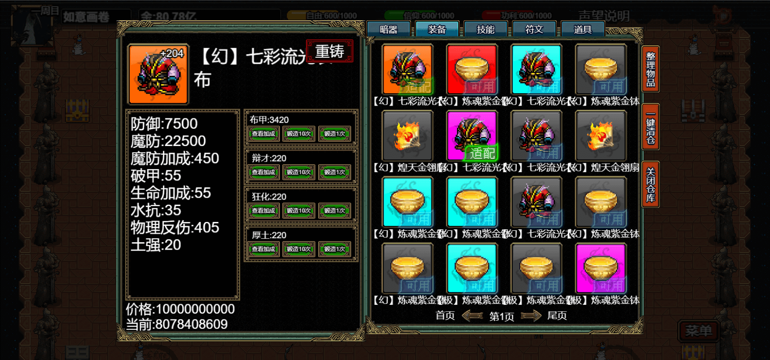 锻造页面可以锻造仓库中的装备,如已经穿在身上需要脱下来。(锻造后穿着的要求会提高,请注意角色的修为是否能够达到穿戴的要求