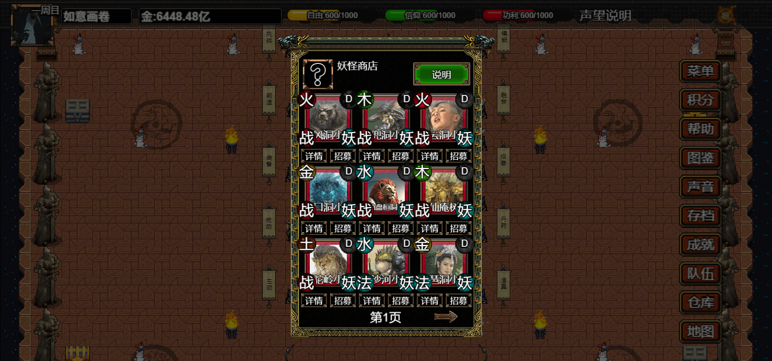 招募商店分为仙妖人(只能招募酱油角色作为融合的狗粮)