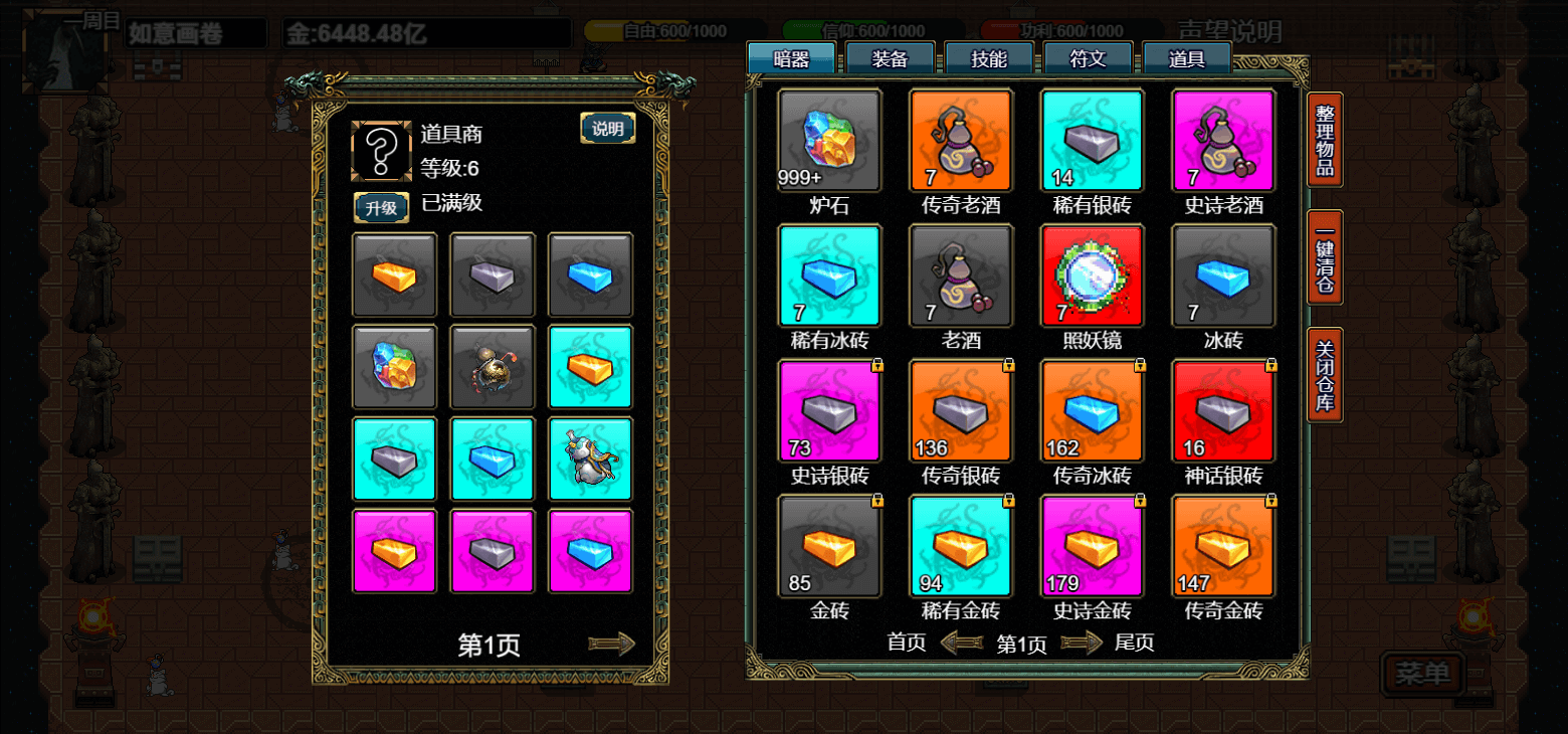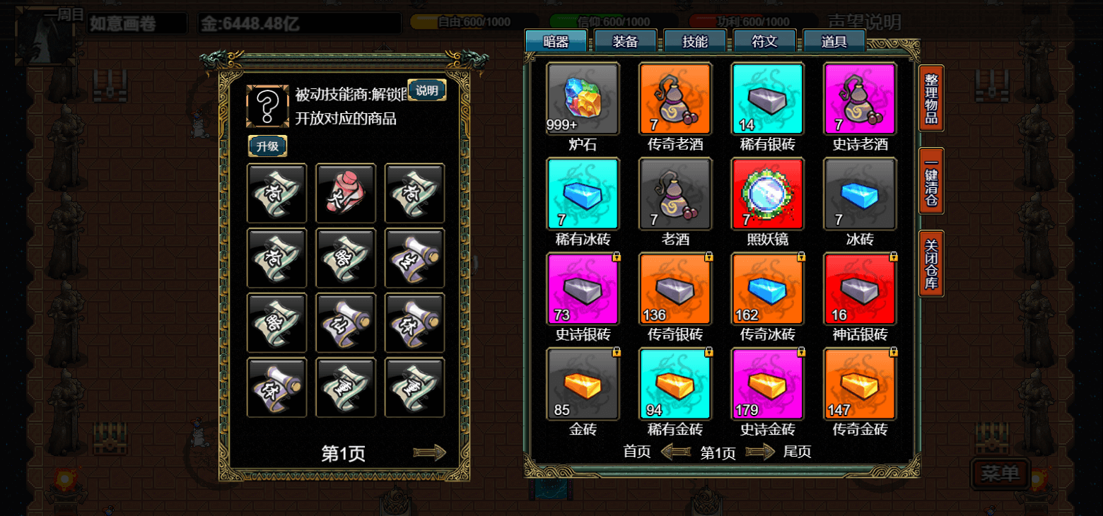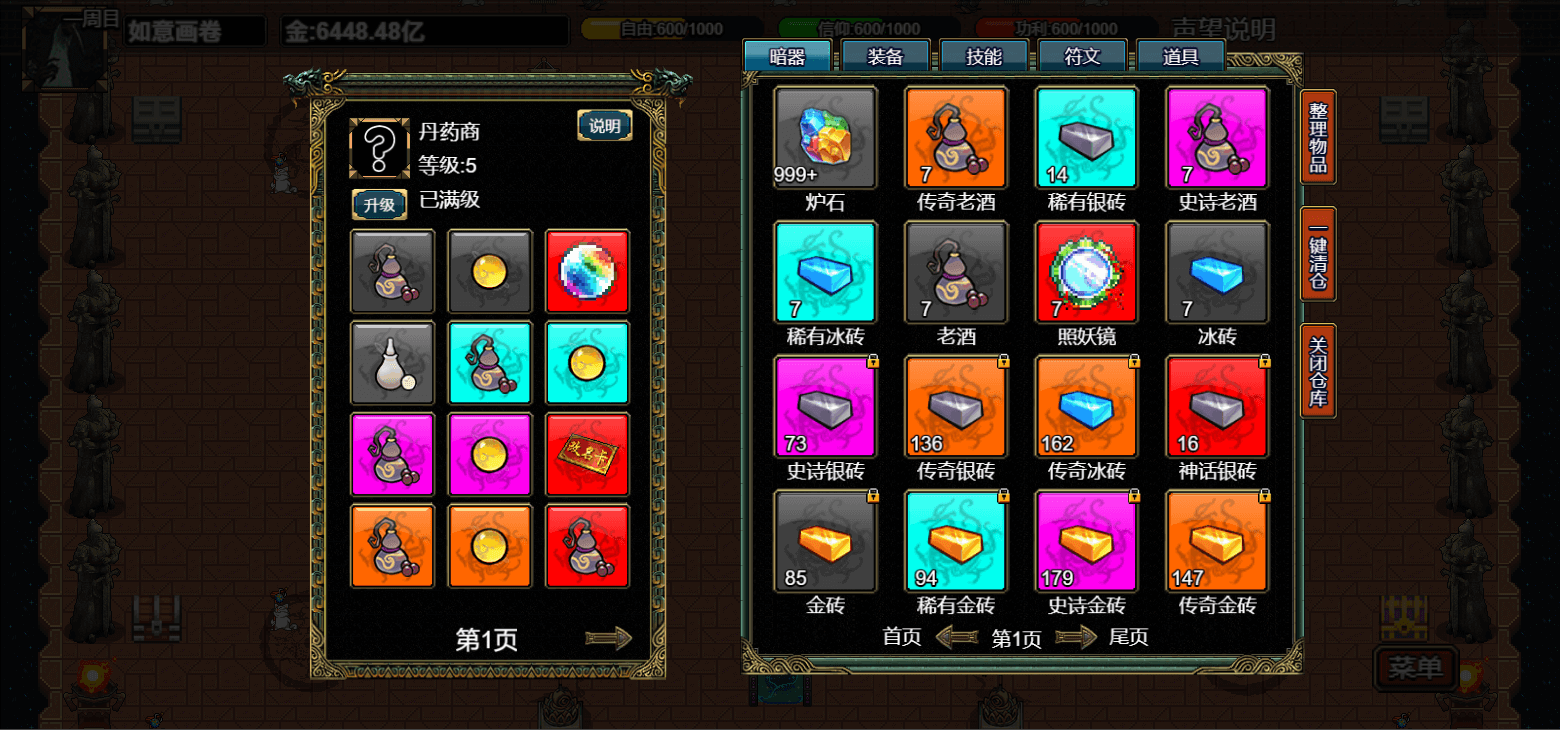 丹药商店需要根据游戏中抉择线路提升的功利点数和金币进行解