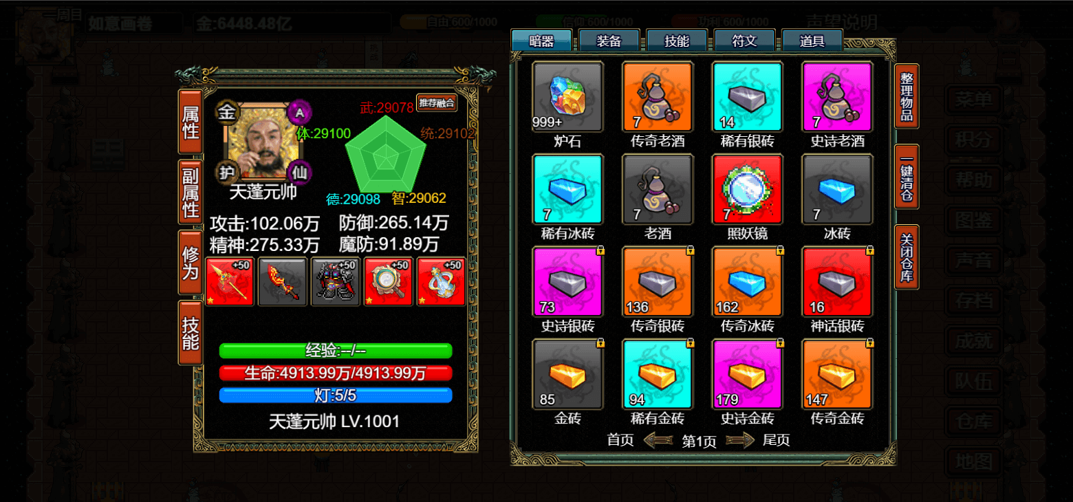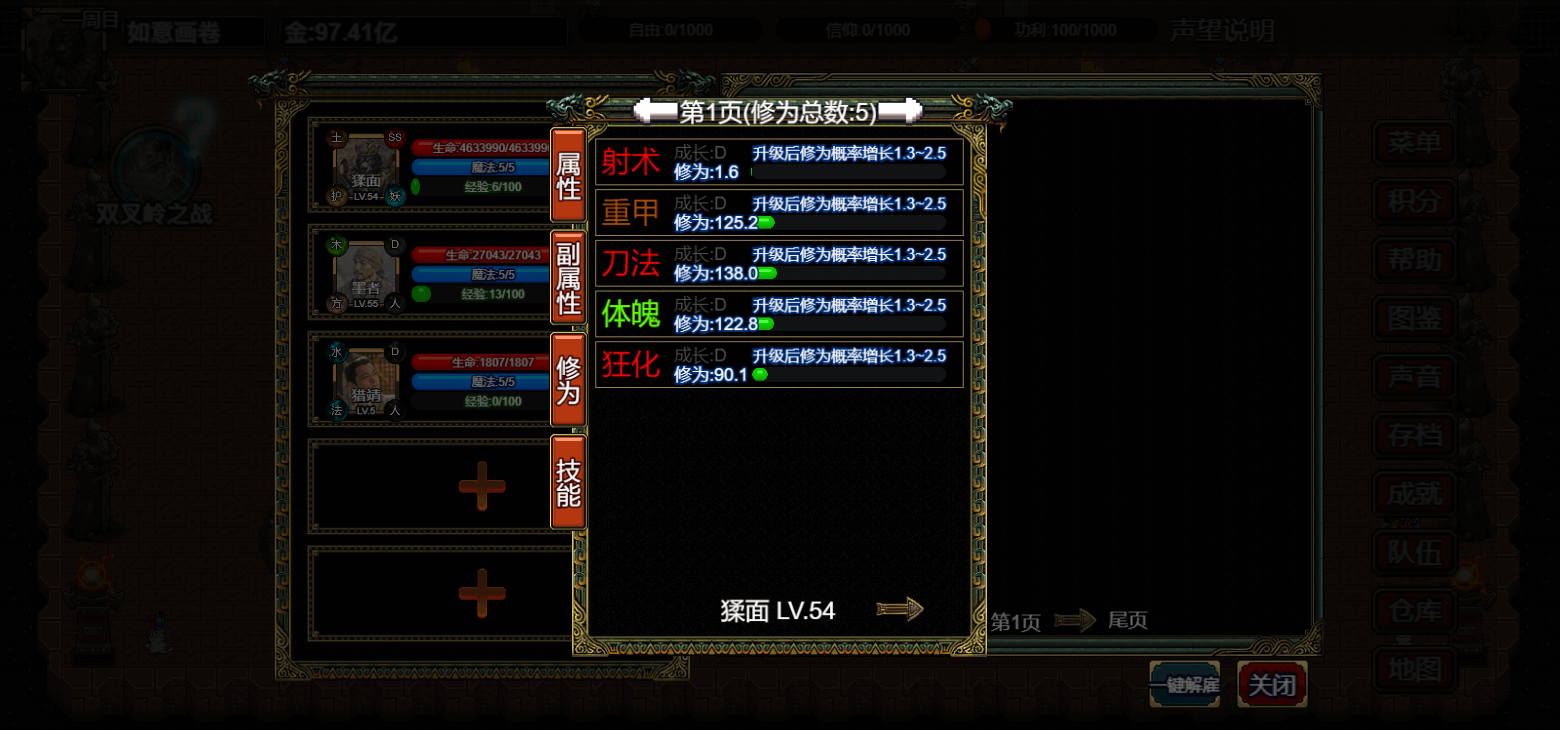 本游戏的底层核心系统是修为系统(修为通过角色升级提高,修为类型可以通过融合增加)