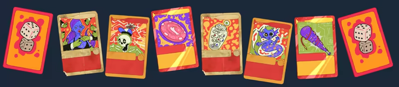 Earn tokens and trade them for powerful (and bizarre) baseball cards that define your build. Stack devastating combos, juggle risk and reward, and keep your goblin gut full with snacks and soda. Heroes need carbs, after all.