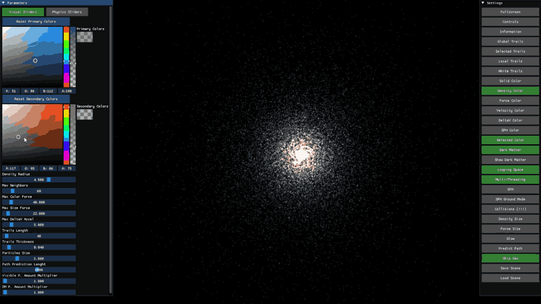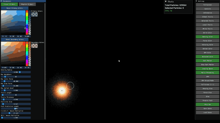 Galaxy Engine is a particle physics sandbox in which you can simulate the Universe in an easy and interactive way. Create visually stunning cosmic simulations with just a few clicks!