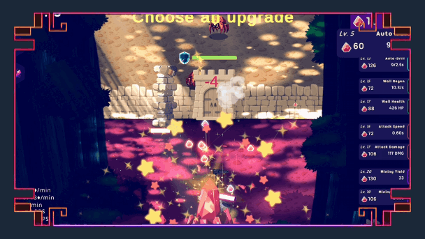 Mine crystals and defend your wall in this idle defense game. Balance resource gathering with combat as you upgrade your way through endless enemy waves.
