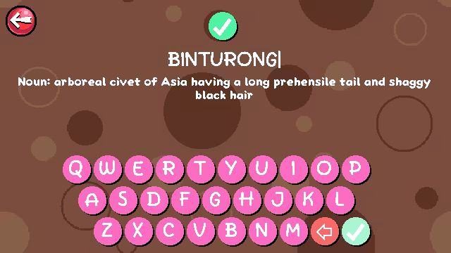 Not sure what word is/isn't allowed? Want a definition to prove that it's a real word? Use the in-game dictionary screen to double-check!