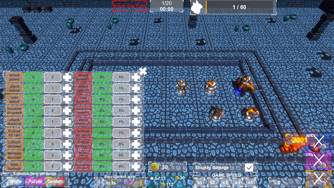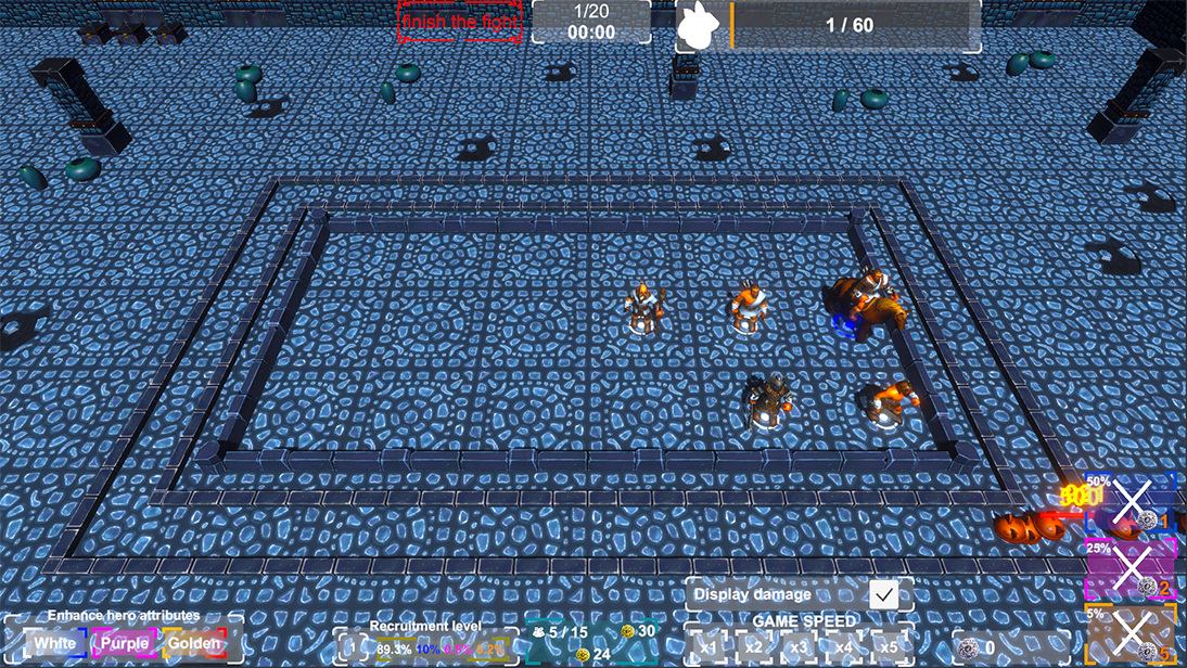 In each turn of the battle, monsters will appear on the battlefield. As long as the monster is not dead, it will continue to move around the chessboard, and all you need to do is recruit heroes to kill the monsters.