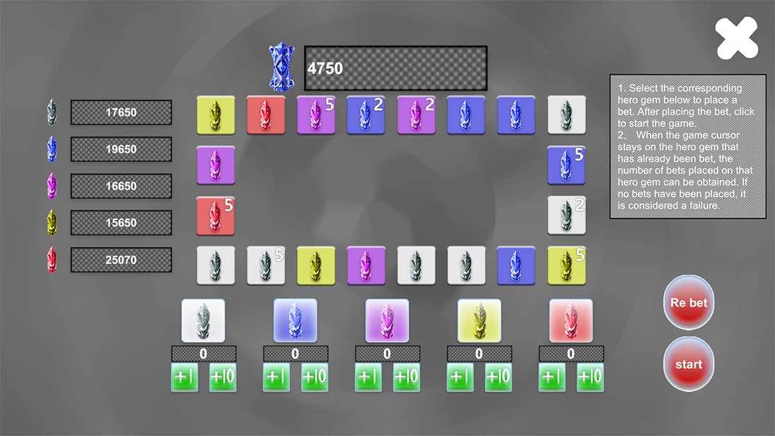 Hero synthesis: Every 4 identical white heroes can be randomly synthesized into a blue hero, every 4 identical blue heroes can be synthesized into a purple hero, and every 3 identical purple heroes can be synthesized into a gold hero. Red heroes can only be synthesized based on the specified heroes and quantity required for different heroes.