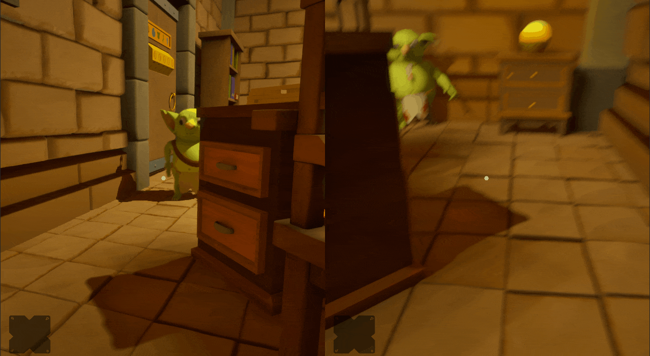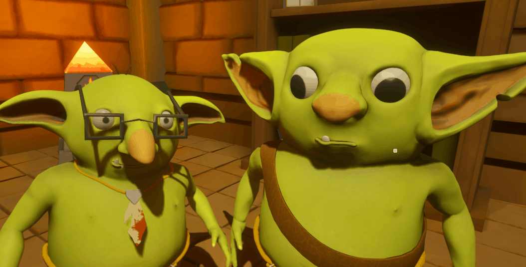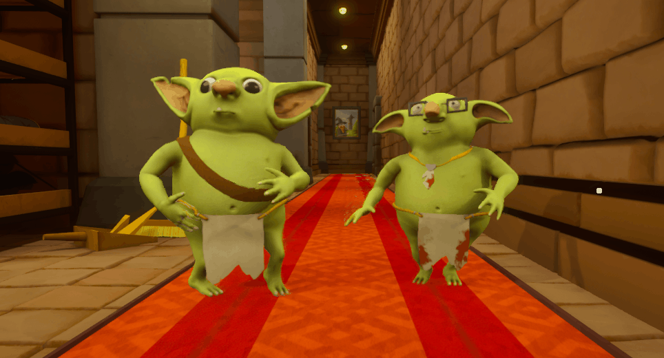 Local co-op escape room. After a conflict with the shopkeeper, two goblins end up trapped. Together, they must explore, solve puzzles, and find a way to escape.