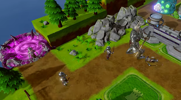 Mysterious island portals unleash plague monsters targeting "Guardian Monuments"—their destruction dooms the island. As defender, use a bow (break armor/hit weak points) and a magic sandtable: place towers, real ones rise to block. Game has VR/desktop versions and map editing for custom levels.