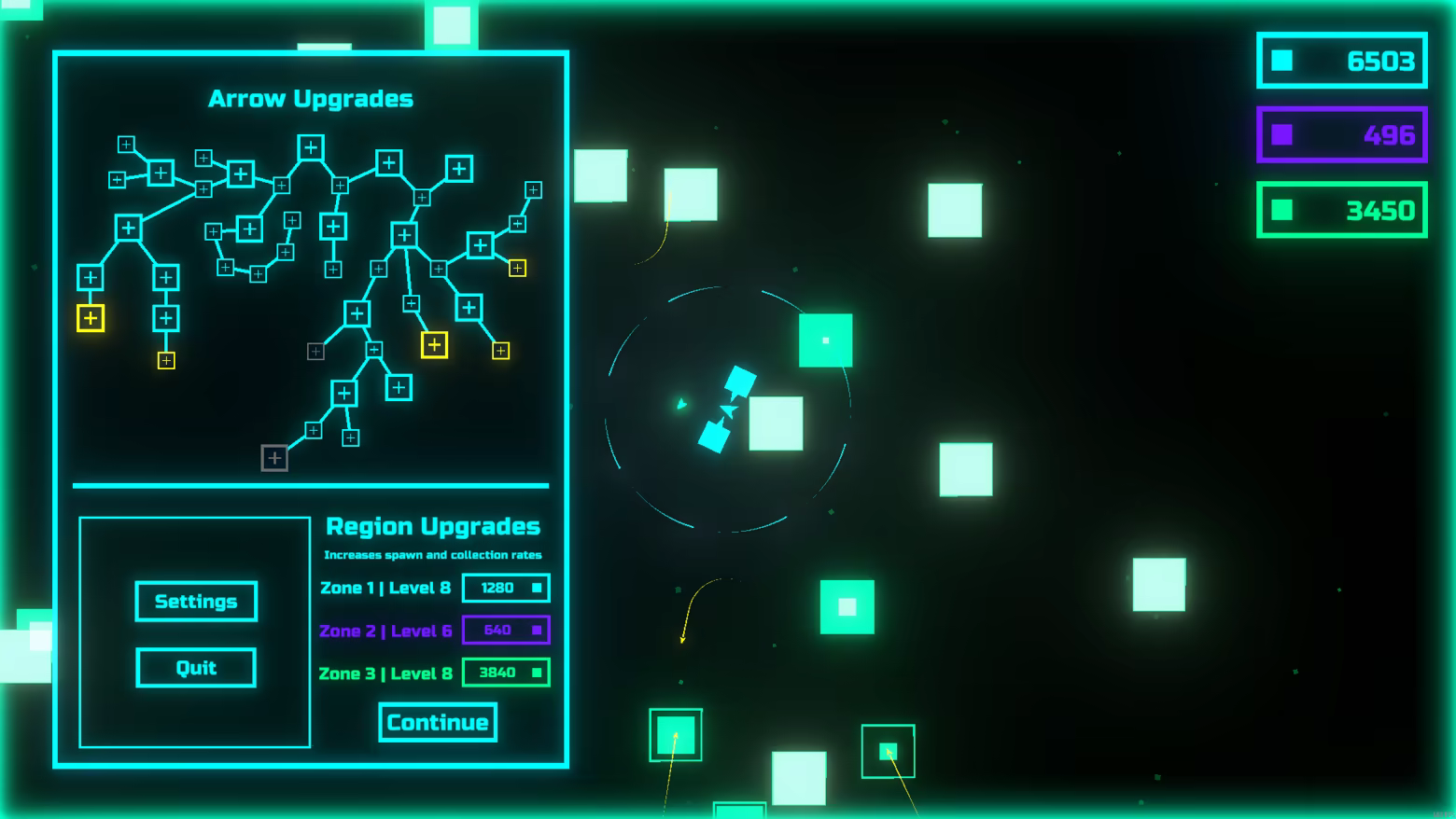 Arrowburst is a calm, relaxing, short incremental game about bursting squares and upgrading your arrow.